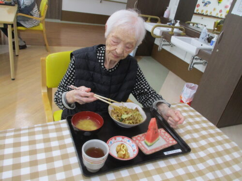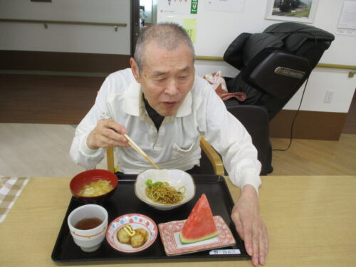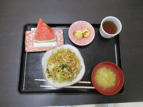 さわやかグループホーム むろらん 夏...屋台の味 2024-07-26 2024-07-25 熱い日のお昼ご飯...熱いやきそばもりもり食べて西瓜で涼しさ全開です。美味しかったの笑顔満開ご馳走様でした。