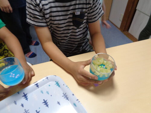 冷やした後は、ゼリーの上に飾りを乗せたら完成です★