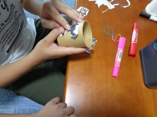 次は、紙コップに輪ゴムをかけたら完成です💓