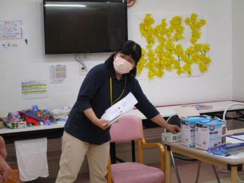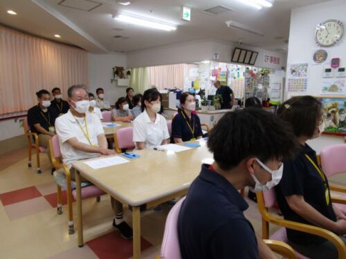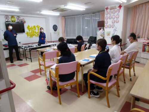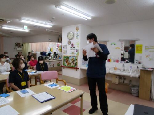 今回は職員会議の後に職員さんに災害と感染対策の研修を行いました