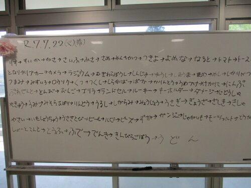 さわやか室蘭弐番館 3階 22日活力朝礼♪ 2025-07-24 2025-07-23 皆様こんにちは♪ 22日の様子をお届けします 暑い日が続く室蘭地方です☀ 程よく体を動かしましょう 頭の体操はしりとりを行いました 最後はうどんでゴールです(#^^#) 楽しい一日になります様に☆