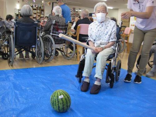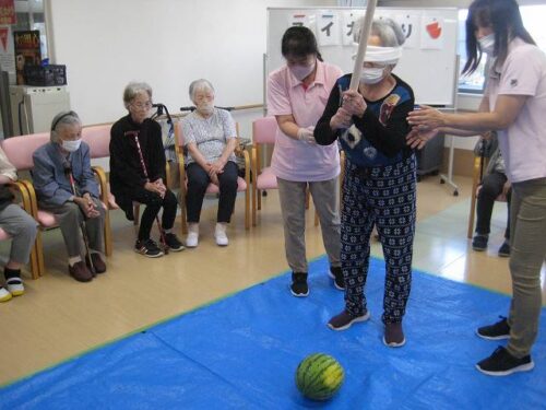 誕生日会の後、スイカ割り🍉を行いました(^▽^)/