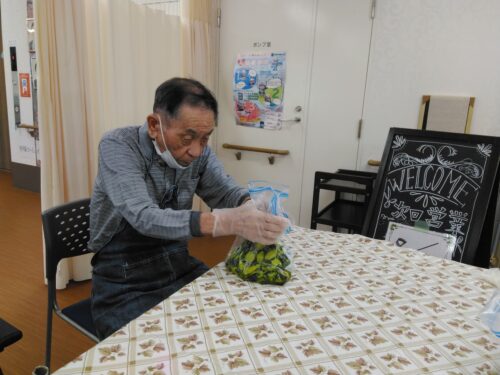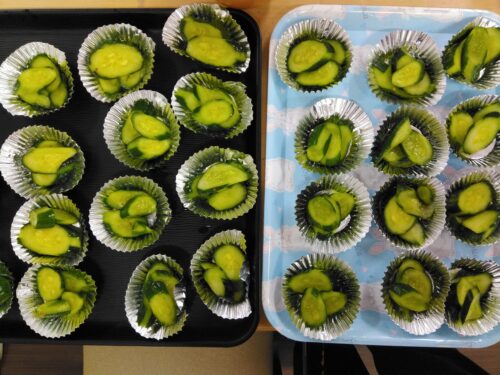 胡瓜をカットしたら、ジップ式の袋に入れます。
