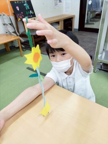 ゆらゆら揺れるひまわりの飾りを作りました‼️