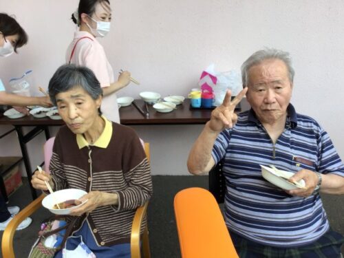 13時半から誘導を開始しました。昼食後でしたが、外で食べるお肉は格別だったようで