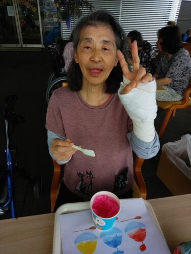 さわやかさがみはら館 かき氷🍧 part④ (さがみはら館) 2024-07-25 2024-07-27 こんにちは!さがみはら館です☺ かき氷レクのご様子、 引き続き 紹介させていただきます(^^)/ ご入居様のご要望にて・・ 3色、盛り付けてみました✌ (西島)