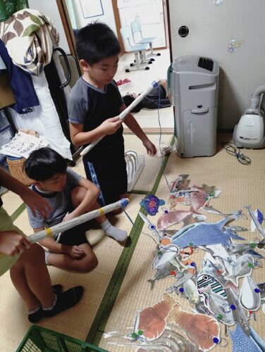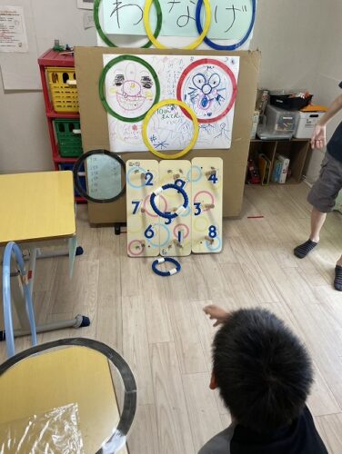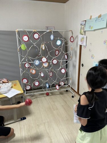 射的、ストラックアウト、輪投げ、魚釣り、積み積みゲーム、ブースの準備も子どもたちがしてくれました。
