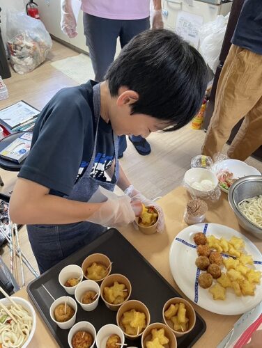 今日はお昼ご飯もお祭り風で、中学生や高校生がお手伝いをしてくれました。