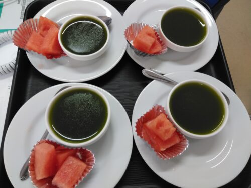 こちらは刻み食の方のおやつです、抹茶ゼリーですね