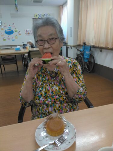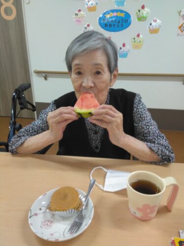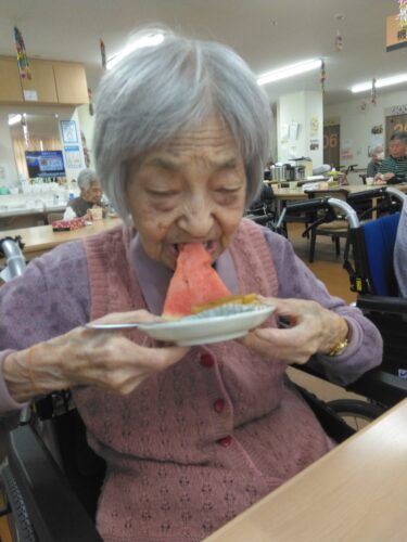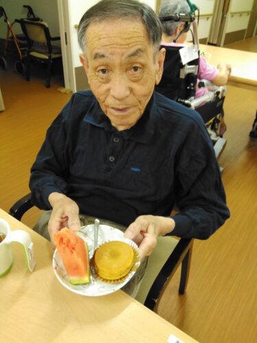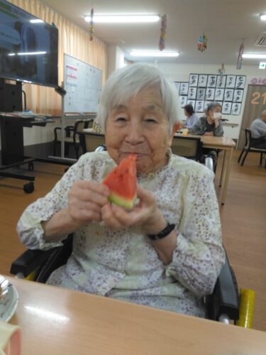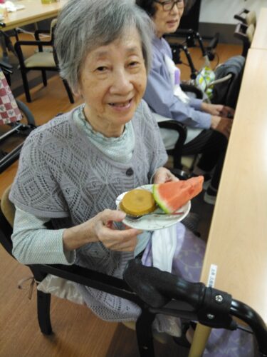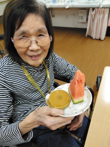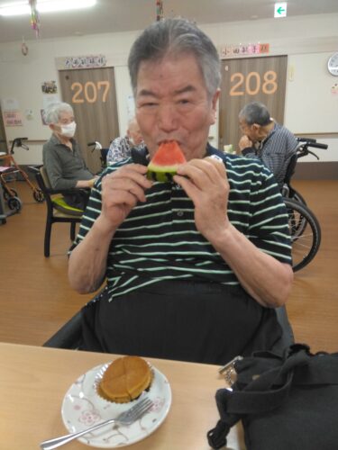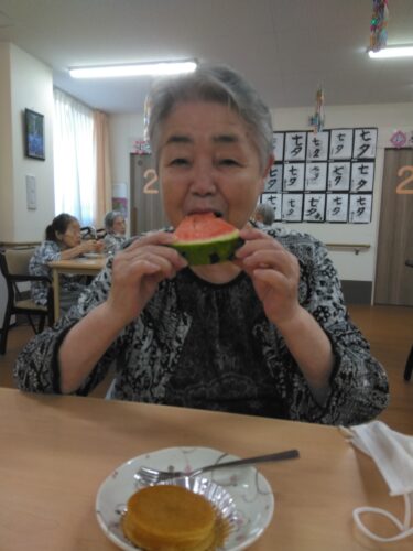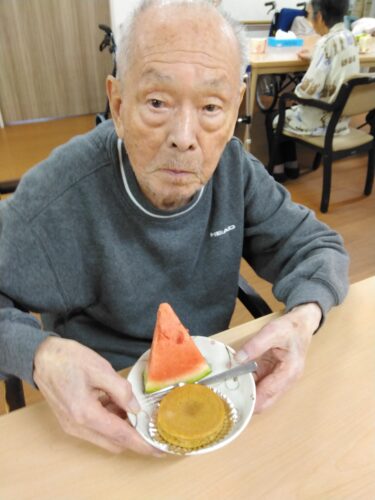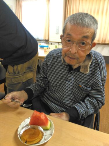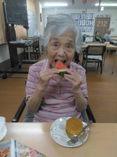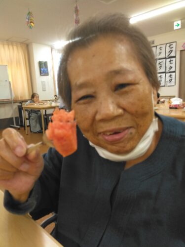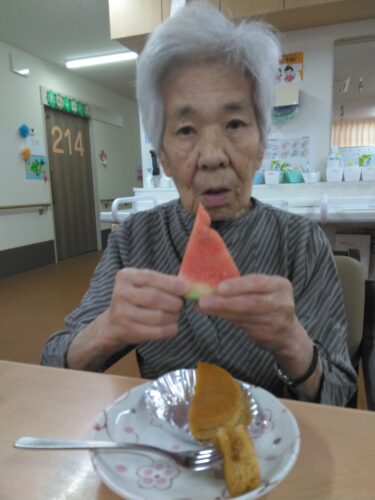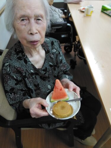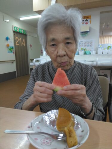 今日は、3時のおやつにスイカを頂きましたよ