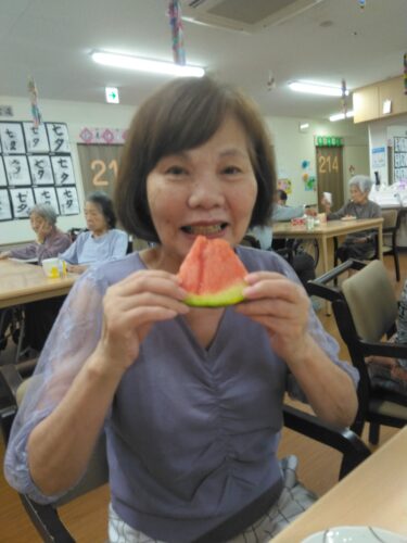 少しずつ、みんなで食べるスイカは格別ですね 🍉