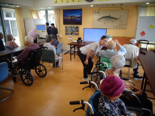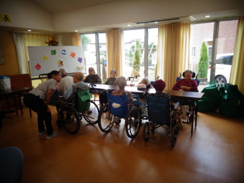 今月の中旬に施設内の床掃除が行われ、皆さま交流スペースで過ごしました。