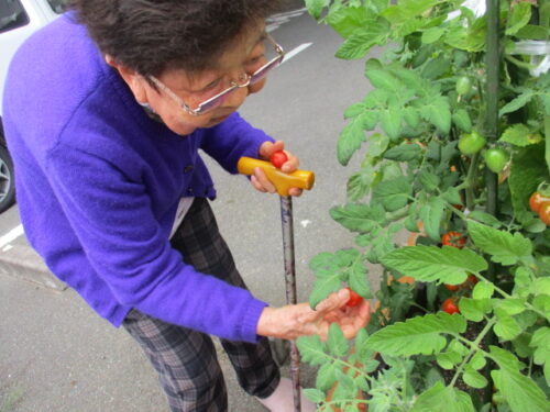 桜弐番館の玄関先にあるミニトマトが食べ頃になっているので今日も収穫して頂きました♪