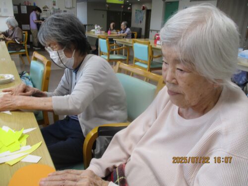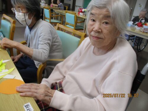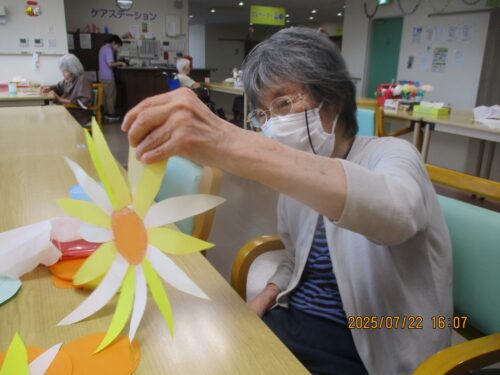 ひまわりを折り紙で作り始めております。 8月中の完成目指して、各階のご入居者様と壁紙を作っております。
