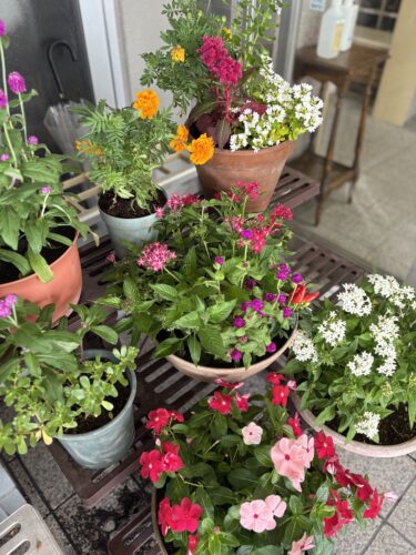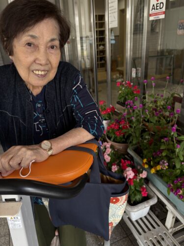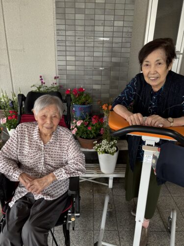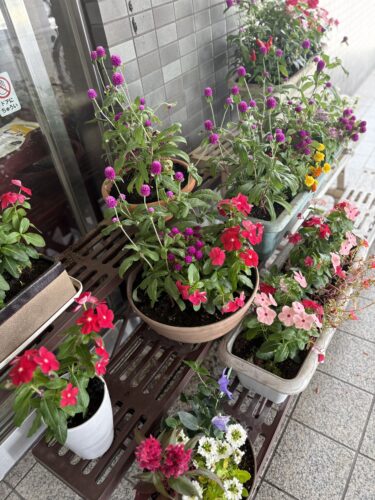 施設の玄関先にお花が並んで 華やかになりました(*^^)v