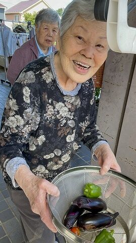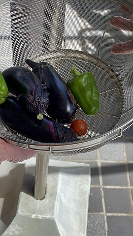 茄子も沢山とれて、「今日のお昼は焼きナスにして!」と