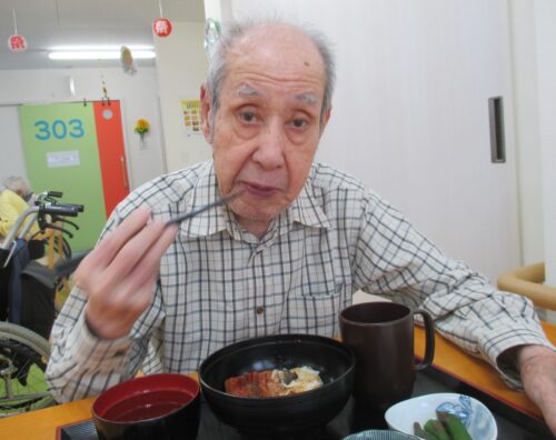 7月24日 土用丑の日でお昼に皆でウナギ召し上がっていただきました。