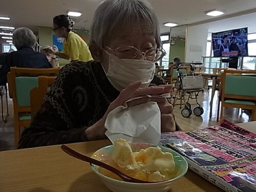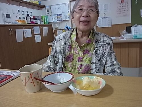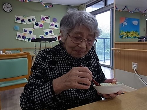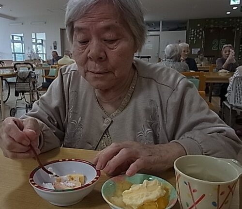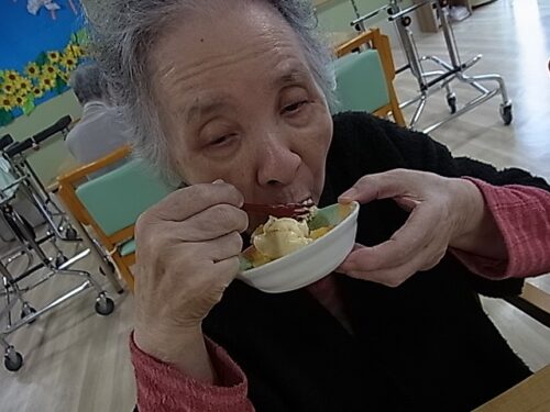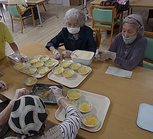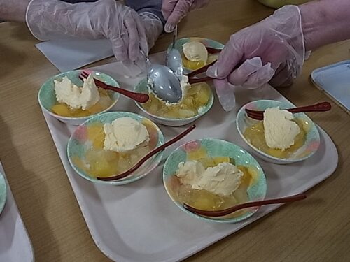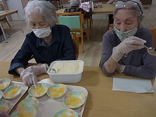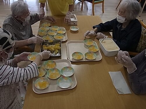 入居者様に盛り付けご協力頂きました