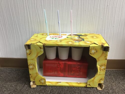 皆にはコップが見えますが、飲む児童さんは何のジュースが入っているかわかりません。