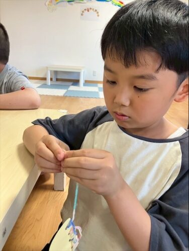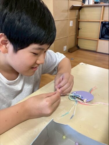 さわやか愛の家 さいだいじ館 クラゲ飾り制作🪼 2025-07-28 2025-07-28 今回はクラゲの飾り作りをしました。 穴に倒した毛糸を引っ張り触手ができました🪼 ビーズを通す作業も難しいですが、自立課題でも取り組んでいるのでみんな楽しみながら真剣に取り組めていました。 さわやか愛の手さいだいじ館