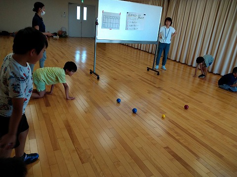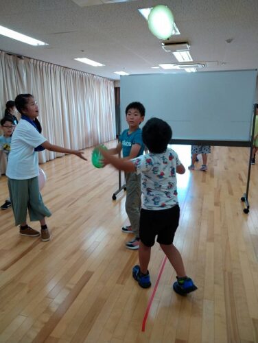 おやつのお買い物をした後には、広いお部屋をお借りしてみんなで一緒に遊びます。