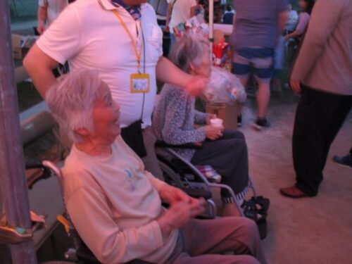 今回は住吉館の近くで盆踊りのお祭りがあったので入居者様をお連れしてお祭りに行ってきました!