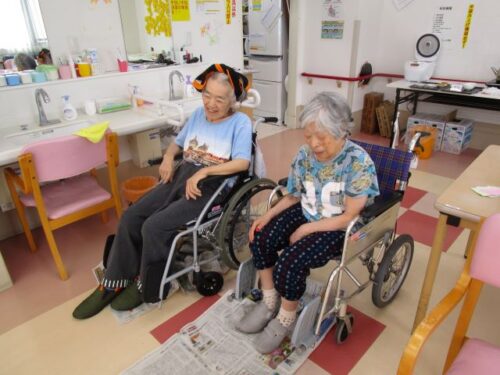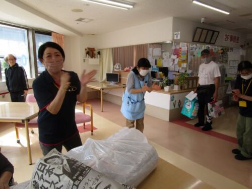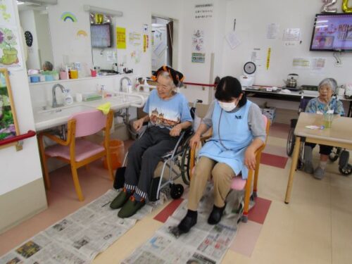 今回は新聞紙を使って足の運動を兼ねたレクを行いました