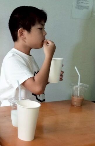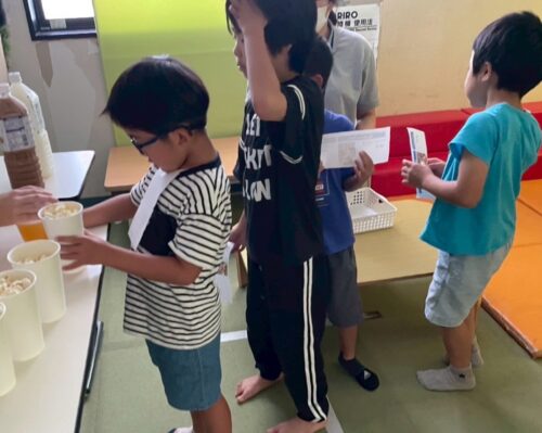 ポップコーンと好きなジュースを選びます。カルピスが大人気でした🍿🥤