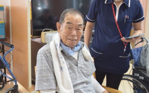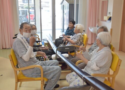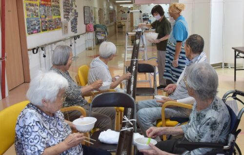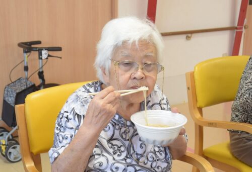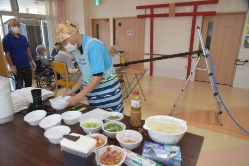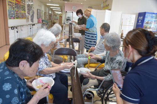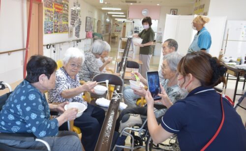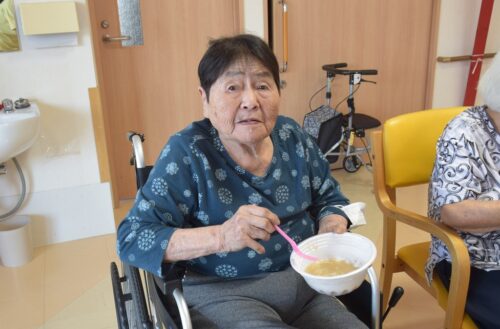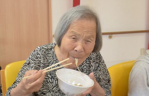 ご利用者さまは箸やフォークを使って必死につかんでいました!