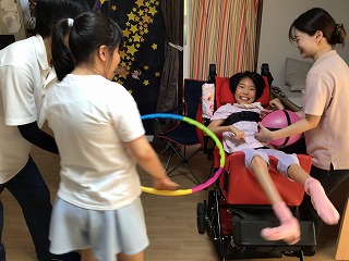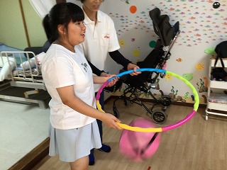 お友だちがフラフープを持ってゴールを作ってくれました🏀