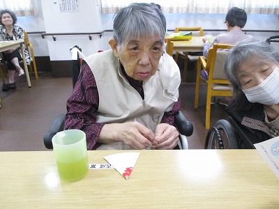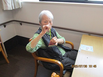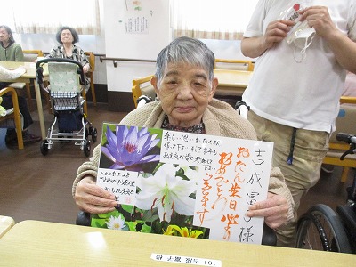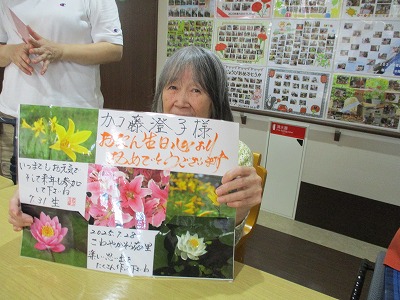 先日行われたお誕生日会では4名の入居者様を桃ゼリーで祝わせていただきました(⌒∇⌒)