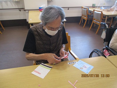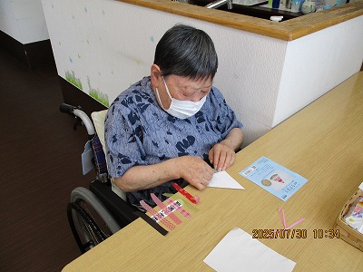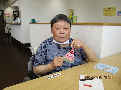 と、いう事で今週のレクリエーションでは西瓜の貼り絵に挑戦です(笑)