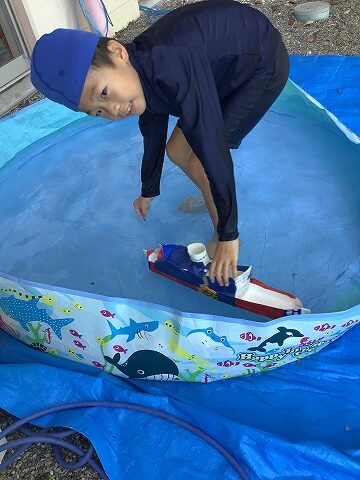 自分で作った船で遊ぶのはとっても楽しいです🚢