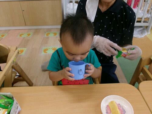 飲み物は施設の方から頂いたリンゴジュースとぶどうジュースでした