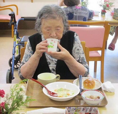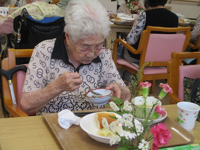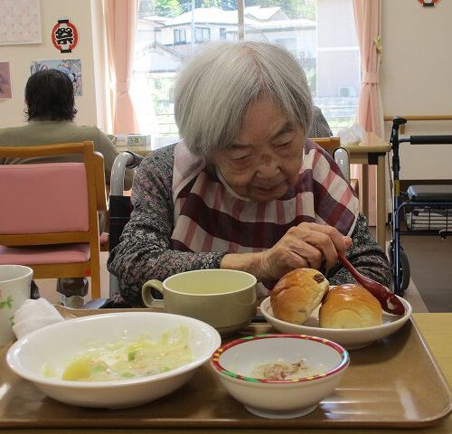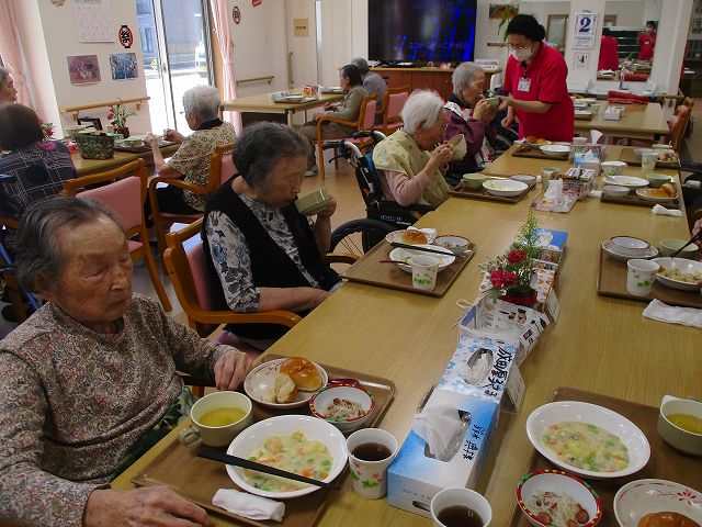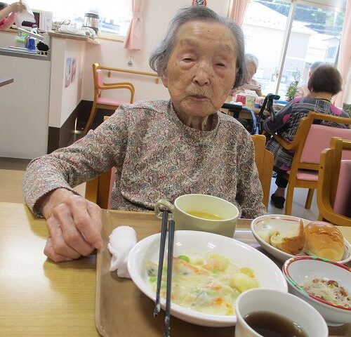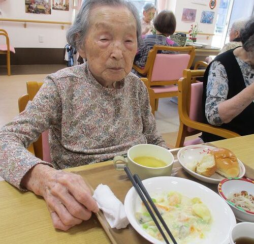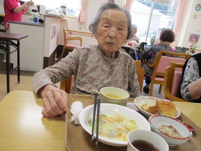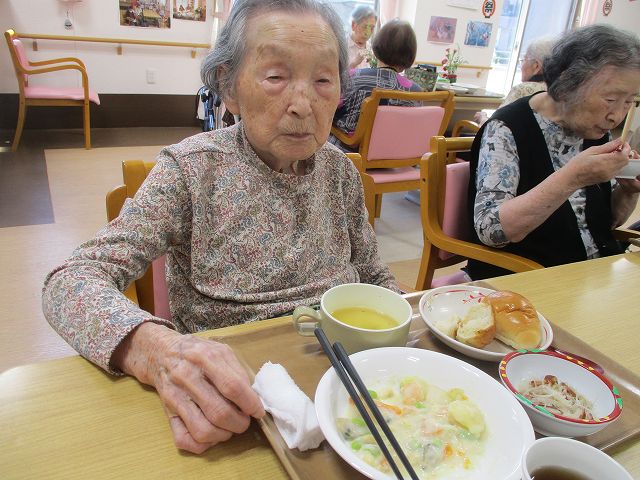 今日はロールパンでした。美味しそうですね。「パン🍞とてもうまかった。」と笑顔で話されておりました。パンの他にもクリーム煮やビーフンソテーでしたけれど「美味しかった。」と大絶賛されておりました。