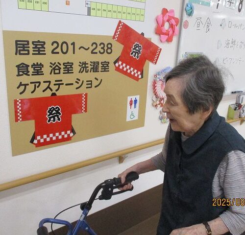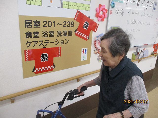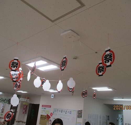 今日は夏祭りの飾りつけを行いました。館内提灯や半被等飾られており夏祭りらしい雰囲気が出ておりますね。多くのご入居者様が「飾りとても綺麗だ。明日の夏祭りとても楽しみだ。」と笑顔で話されておりました。どんな夏祭りになるか楽しみですね。祭りの内容は明日載せたいと思います。では明日のブログもお楽しみに。