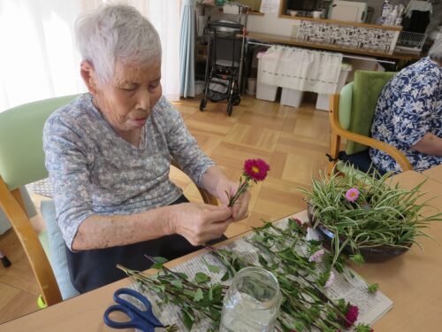 さわやかグループホーム なすしおばら すいせんユニットの様子 2025-08-06 2025-08-03 生け花をなさってます🌸 ハサミを入れてお花の高さに変化を付けて・・・ 完成です! お上手ですね~ きれいな生け花のです(*^_^*)