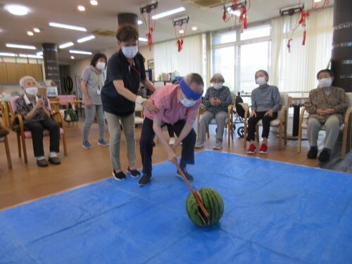 そんな中『俺が割る!』と自信満々だった利用者様。最後に挑戦して頂く事にしました。