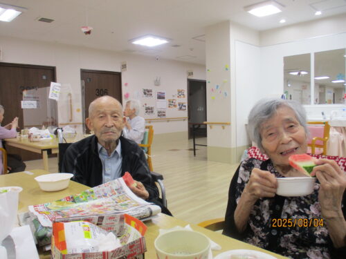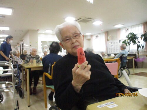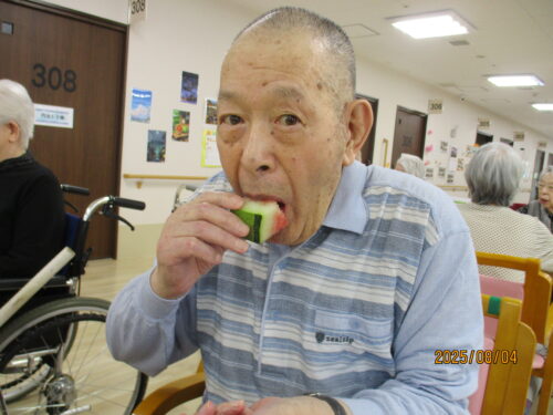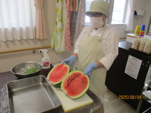 美味しそうに大きくなった食べごろなスイカを、入居者様の前で切って見たところ、、、