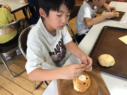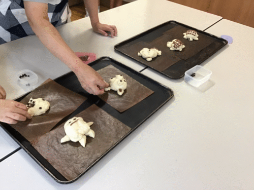 続いては、個性あふれる創作パン。クマやウサギなど動物の形にしたりするなど、個性溢れる素敵なパンができました。焼き上がった創作パンをみて「わぁ~✨」と笑顔の子どもたちです😊