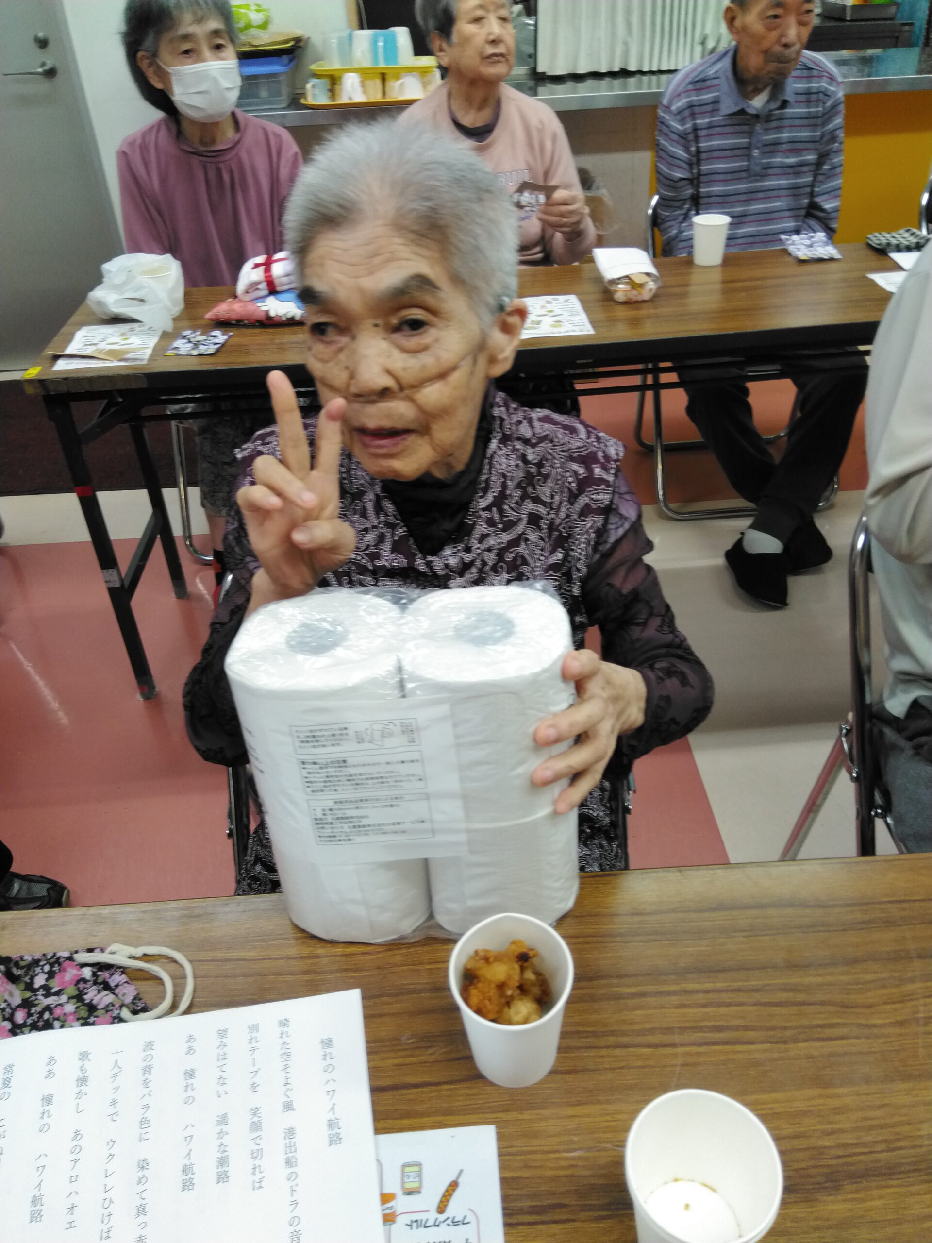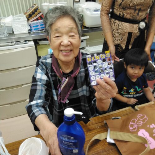 下の写真はビンゴゲームで景品をもらった方々や風景です