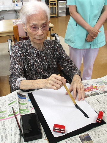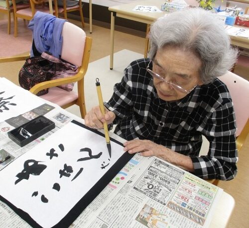 習字レクに参加してくださるご入居者様の人数が増えてきています!