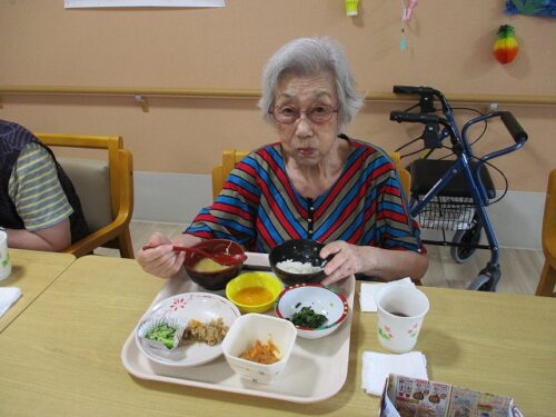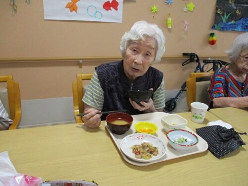 さわやか室蘭弐番館 3階 6日昼食♪ 2025-08-07 2025-08-06 皆様こんにちは♪ 昨日の昼食の様子をお届けします ベランダ菜園で収穫した胡瓜🥒を 梅和えにして提供させて頂きました さっぱりして美味しいねと 次回の収穫が楽しみです☆