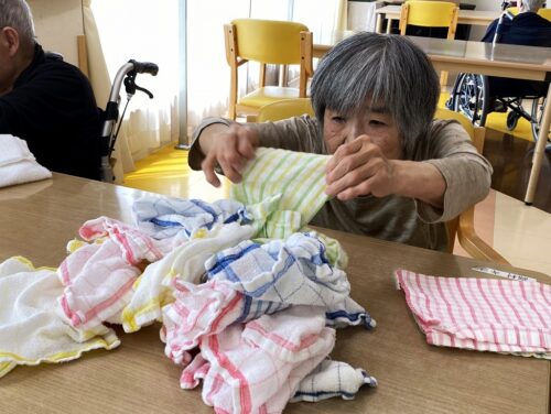 さわやかかぬま館 生活レク【さわやかかぬま館】 2025-08-07 2025-08-06 特定のご利用者様が昼食後、洗い終わったおしぼりをたたんでくれます! 目の前に積まれたおしぼりを次から次とまたたんでいきました! 担当☆木主