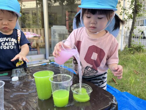 みんな、色水あそびを楽しんでいました✨️