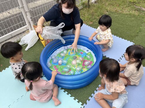 プールの中に入った水風船を🎈