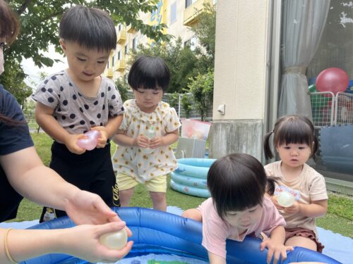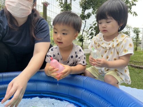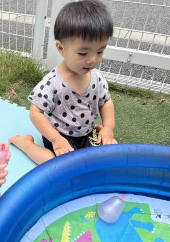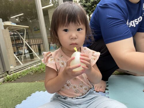 水風船を大事に持っているAちゃん🍈