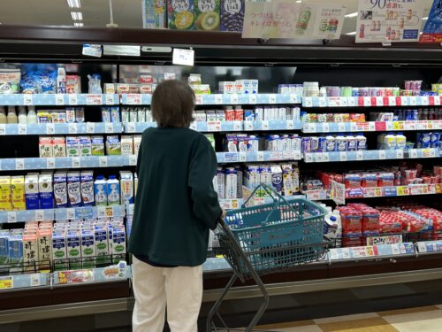ショッピングカートを持ち「何を買おうかな。」と悩まれながら買われていました。