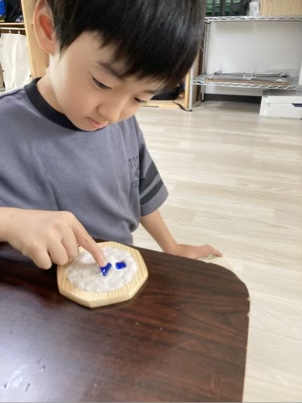 粘土を使わずに、タイルに直接貼り付ける児童もいました😊