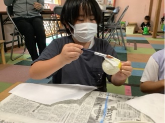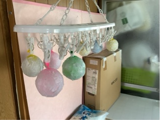 一日目は風船を膨らまして半紙を貼ります_(:3 」∠)_